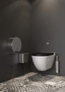 Frost Nova2 hygienebøtte, polert. Veggmontert. Materiale: rustfritt stål. Design: Bonnelycke MDD. Høyde: 200 mm, bredde 235 mm, dybde: 119 mm. Innhold: 3 liter.