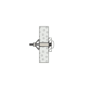 fischer HM hulromsdybel for platetykkelse 3-13 mm. Maks arbeidsstykketykkelse 16 mm. Dybelen kan monteres med monteringstenger, en skrutrekker eller en skrutrekker.