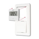 Termostaten er utviklet for innbygging i veggboks og gir et diskret uttrykk på veggen. LCD-displayet gjør det enkelt å lese av og justere innstillinger. Den hvite fargen gir et rent og moderne utseende som passer inn i de fleste interiør.
