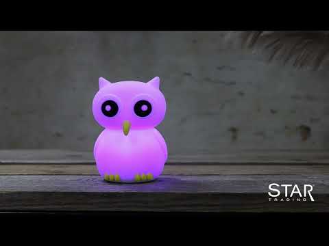 Ugle nattlampen er laget i slitesterk plast og tåler små hender. Den er lett å betjene – både barn og voksne kan enkelt slå den av og på, eller endre farge, med et lett trykk på lampen. Perfekt for både nattbordet, bokhyllen eller som trygg følgesvenn ved sengen.